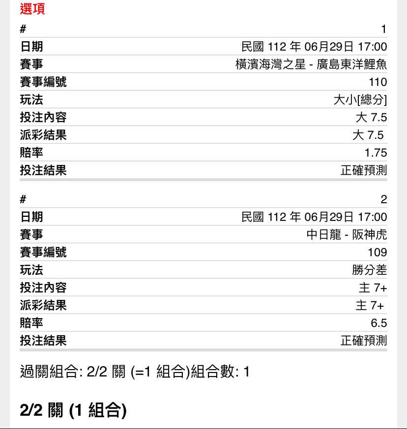 推 daidai424: 單局串關真的硬 223.137.71.164 06/29 16:30