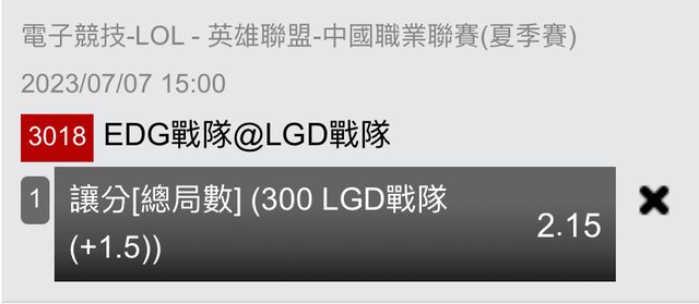 推 bena12793: +1.5第一把就贏看看 101.10.12.241 07/07 15:13