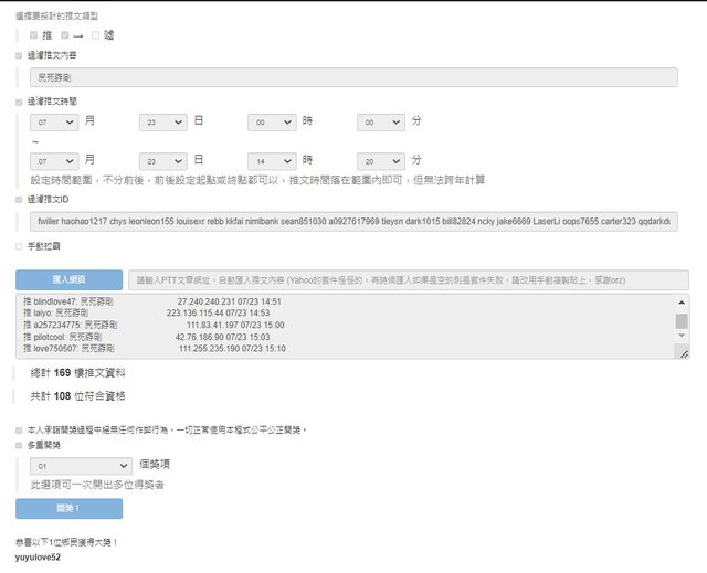 運彩版有發文 無重複參與抽獎