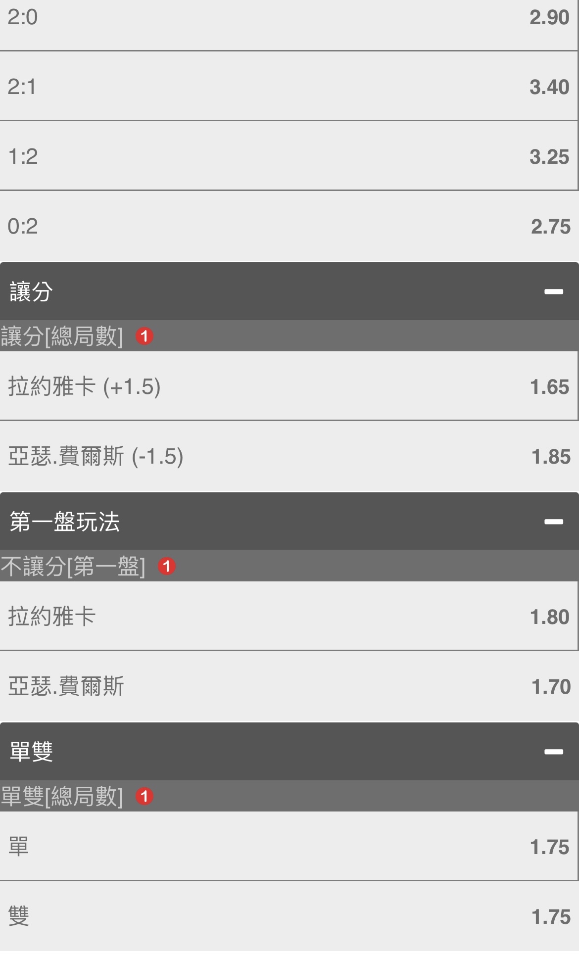 推 pttfft: 有賽前盤口的圖嗎 49.216.174.218 07/27 19:12