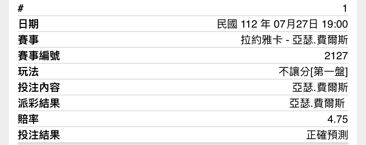 推 joe617001: 主第二盤收收 雖然轉到爛賠1.52==114.136.150.115 07/27 20:50