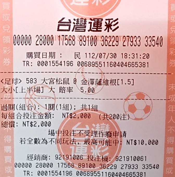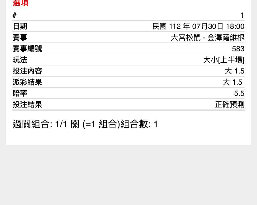 推 Peteribb: 尾球2.85太低了只買一張,唉可惜 27.52.30.57 07/30 19:54
