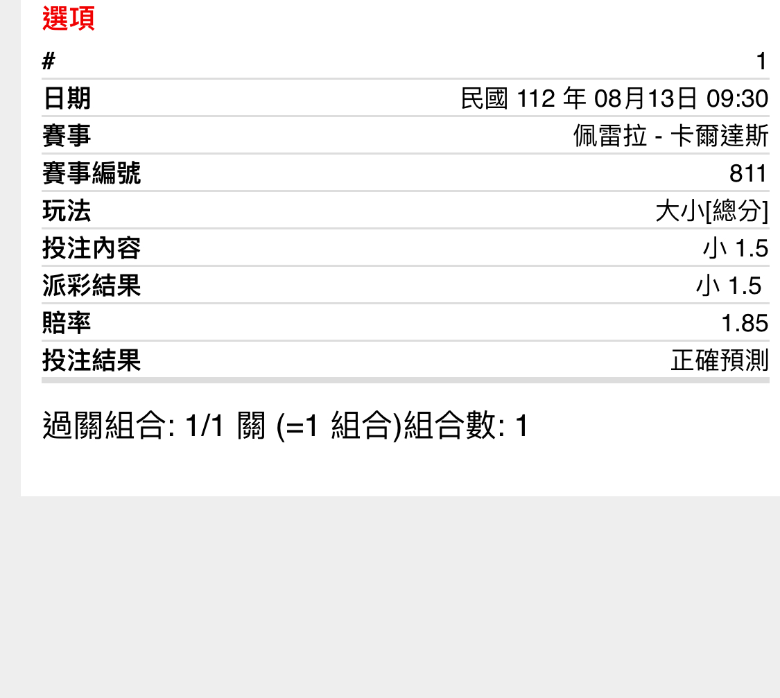 → kirk0110: 保守的玩1.5大,因為0-1連發機率不高 122.118.122.16 08/13 10:07