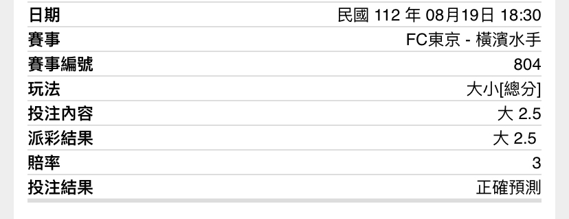SunnyRan: 我剛剛87分看到3倍買下去 結果出來2.45 101.9.194.153 08/19 20:25