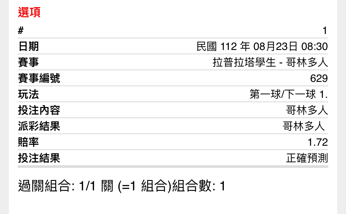 拉普拉塔學生 0 哥林多人 1 離開一下 晚點更新 ----- Sent from JPTT on my HTC U12 life. -- ※ 發信站: 批踢踢實業坊(www.ptt-site.org.tw), 來自: 101.136.229.173 (臺灣) ※ 文章網址: https://www.ptt-site.org.tw/SportLottery/M.1692748872.A.8CB