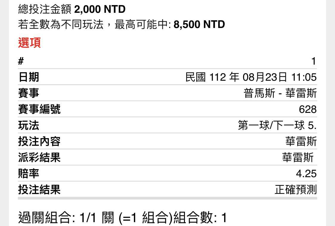 Taiwan007: 剛那場買上半1.5大就不踢 42.77.32.178 08/23 11:41
