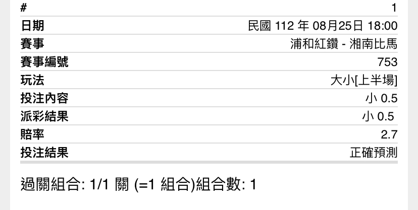 -- ※ 發信站: 批踢踢實業坊(www.ptt-site.org.tw), 來自: 180.217.35.93 (臺灣) ※ 文章網址: https://www.ptt-site.org.tw/SportLottery/M.1692956710.A.043