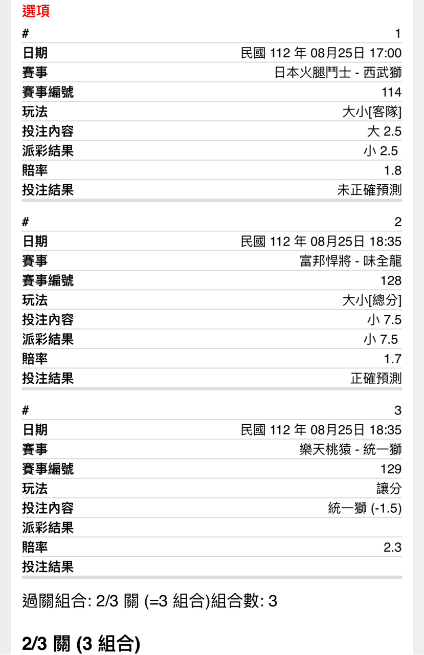 -- ※ 發信站: 批踢踢實業坊(www.ptt-site.org.tw), 來自: 27.51.128.241 (臺灣) ※ 文章網址: https://www.ptt-site.org.tw/SportLottery/M.1692957114.A.C31