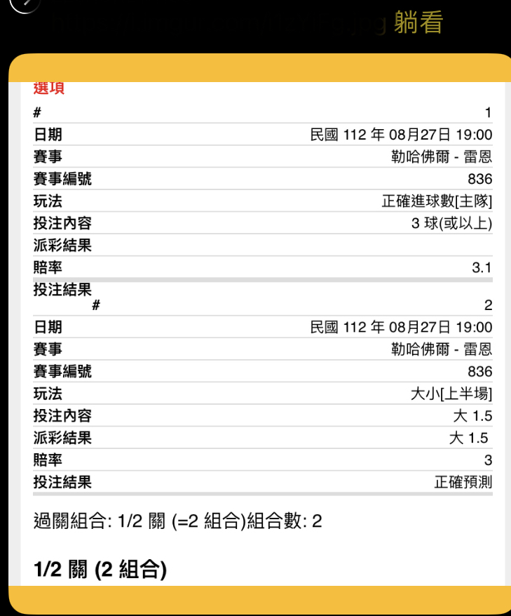 → henkyu: 雷恩3+在上半第二球時套雷恩兩球應該也滿 116.241.205.63 08/27 20:59