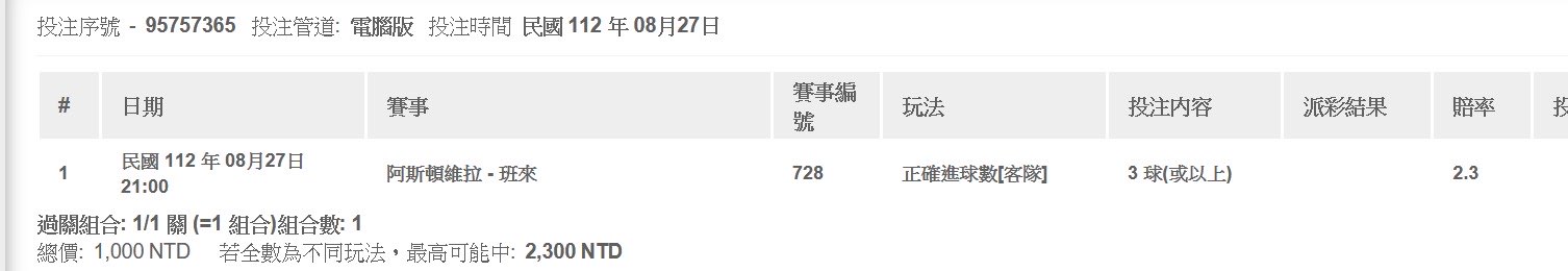 阿斯頓維拉 3 班來 1 ----- Sent from JPTT on my HTC U12 life. -- ※ 發信站: 批踢踢實業坊(www.ptt-site.org.tw), 來自: 101.137.78.123 (臺灣) ※ 文章網址: https://www.ptt-site.org.tw/SportLottery/M.1693139577.A.3CF
