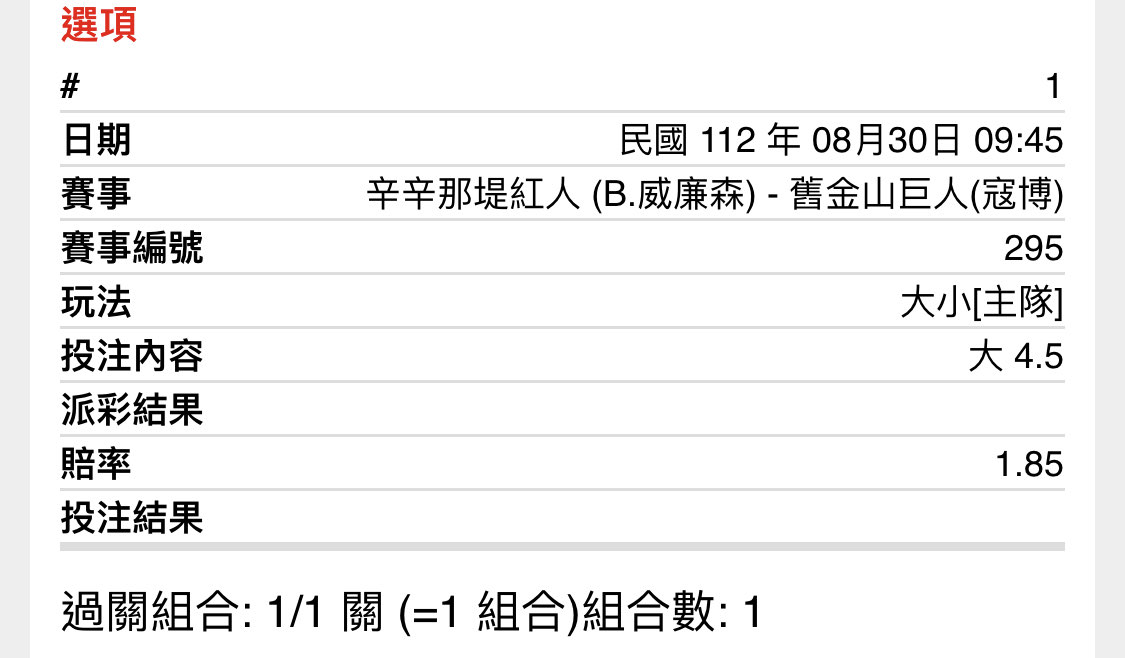 kid1106: 巨人單大開4.5 賠率1.8 49.216.80.240 08/30 11:11