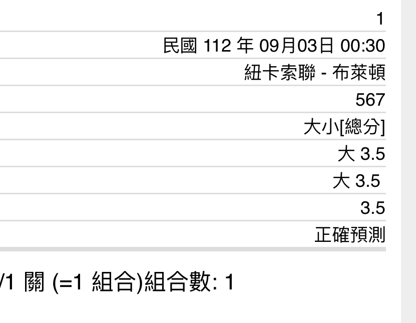 ricky6114: 只能買半全場和紐+紐紐了150.116.219.66 09/03 00:29
