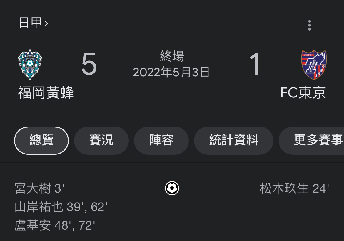福岡黃蜂 2 - 1 FC東京 2' 黃蜂 11'黃蜂 -------- 86'東京 1800開踢 日甲 -- ※ 發信站: 批踢踢實業坊(www.ptt-site.org.tw), 來自: 125.230.179.148 (臺灣) ※ 文章網址: https://www.ptt-site.org.tw/SportLottery/M.1693734991.A.32F