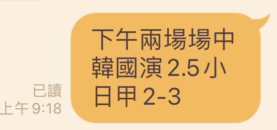 superdunkpig: 下午兩場場中,韓國看2.5小、日甲 116.241.160.29 09/03 20:10