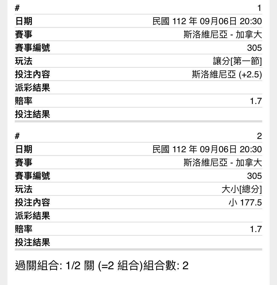 最近有點準,趁這波氣勢來推個牌 斯洛維尼亞VS加拿大 主推177.5小 1.75 副推Q1 客pk 2.3 最後祝大家順利尻剛 ----- Sent from PttX on my iPhone -- ※ 發信站: 批踢踢實業坊(www.ptt-site.org.tw), 來自: 111.71.105.54 (臺灣) ※ 文章網址: https://www.ptt-site.org.tw/SportLottery/M.1693973612.A.4EE