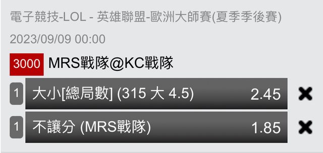 這場時間一直調 一下22一下23現在又24 00:00 MRS@KC 美國爸爸8888 那統治法國的KC爸爸呢? 複習一下季後賽不是30就是32 下午之前賭盤一直看好KC 剛剛賠率突然調近了 兩隊算是蠻像的 小組賽都打很差3-3 但季後賽都打的不錯 覺得其中一邊要30不容易 那就猜打好打滿聽戰歌吧! 看一下場館應該是在法國 正常應該是要看23 但隔壁德國都能贏美國了 這邊的西班牙應該也可以下剋上幹掉地主吧? 略看32 推 4.5大 2.45、MRS PK 1.85 https://i.imgur.com/NkdUqby.jpg
