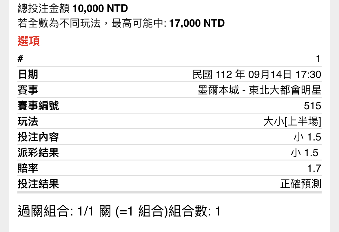 推 z954008: 上半先來3顆4顆 1.162.142.6 09/14 17:38