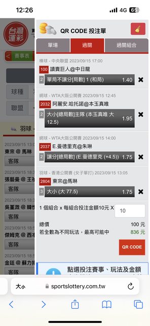 除了網球 剩下兩場是我覺得有機會 拿來串的