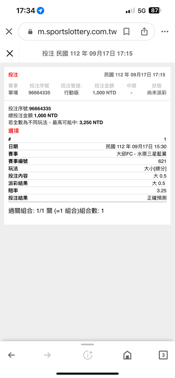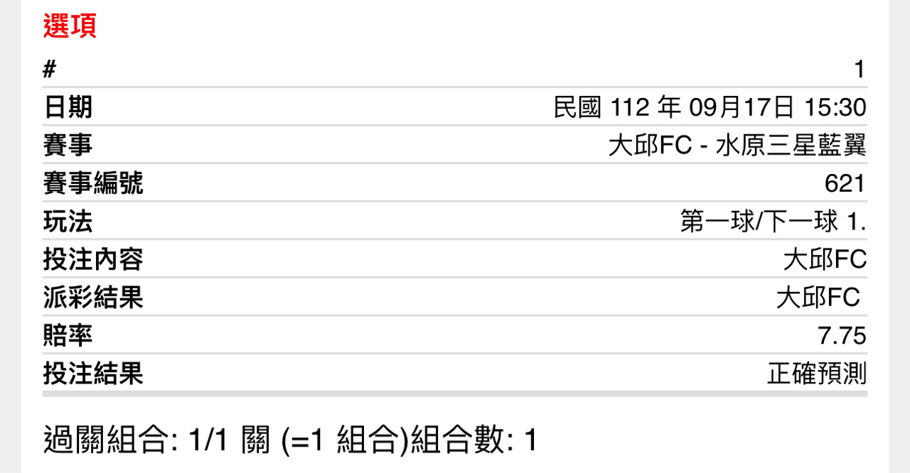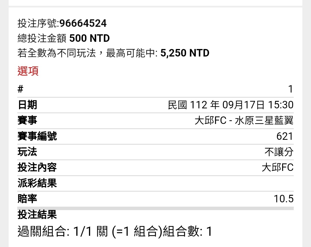 → kobe7477: 爽 補回上一場還倒賺 101.137.155.5 09/17 17:27