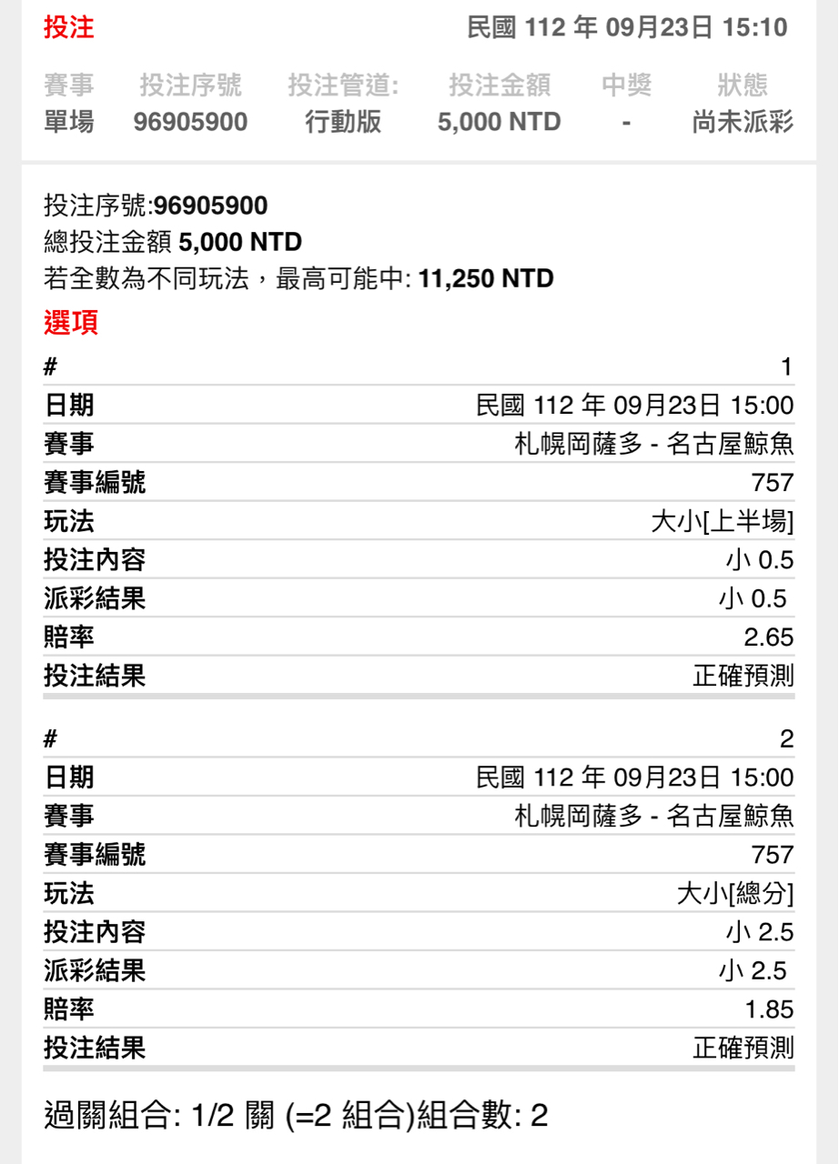 推 all035: 超過吧 中場1.9 27.51.113.75 09/23 16:31