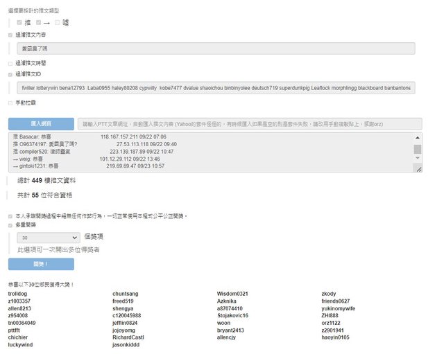恭喜以上得獎者