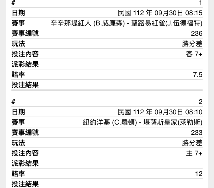 德州遊騎兵 0 0 0 0 0 0 0 0 0 西雅圖水手 0 0 3 5 0 0 0 0 X win 平盤對決 場中王者水手再臨? -- ※ 發信站: 批踢踢實業坊(www.ptt-site.org.tw), 來自: 27.51.113.75 (臺灣) ※ 文章網址: https://www.ptt-site.org.tw/SportLottery/M.1696039516.A.7CE