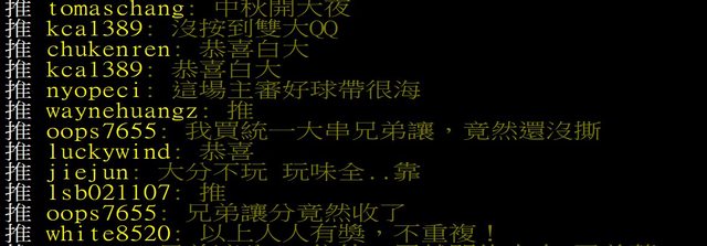 推 tn00364049: 恭喜 white8520大 中職雙大 27.247.194.17 09/30 13:50