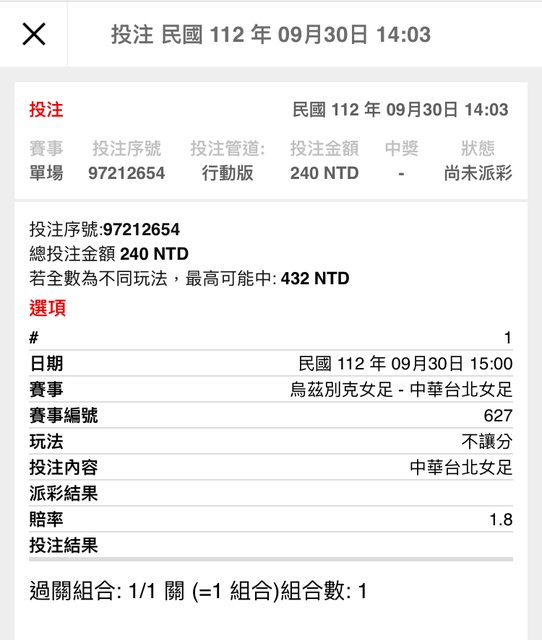 平常都100一張 突然想愛國一下重注240哈 台灣加油啊! https://i.imgur.com/oYTuV4V.jpg