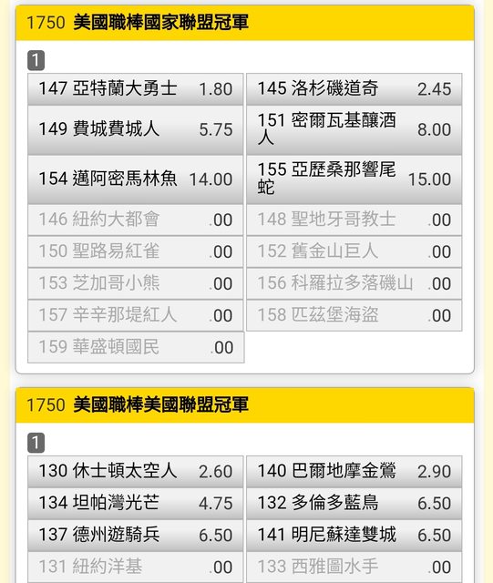 標題[閒聊] 美職棒總冠軍賠率-記錄用