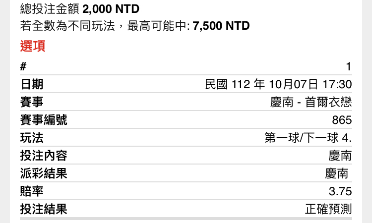 → ty7788665: 賽前3.5等好久 114.137.62.140 10/07 19:25