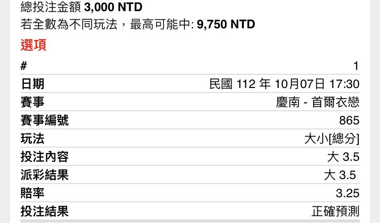 噓 ChrisTaylor: 大家都買大 我買2.5小 是不是送錢了Q 49.215.32.25 10/07 18:07