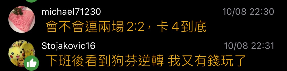 → michael71230: 會不會連兩場2:2,卡4到底 118.231.152.99 10/08 22:30