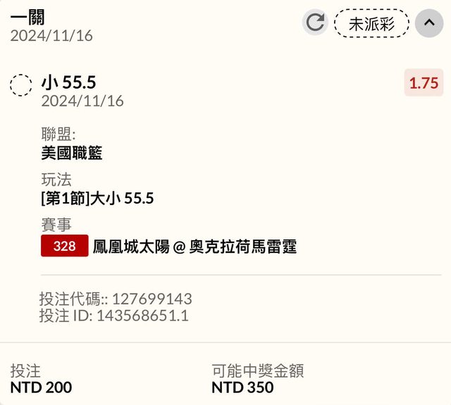 ※ 文章網址: https://www.ptt-site.org.tw/SportLottery/M.1731688834.A.B5C