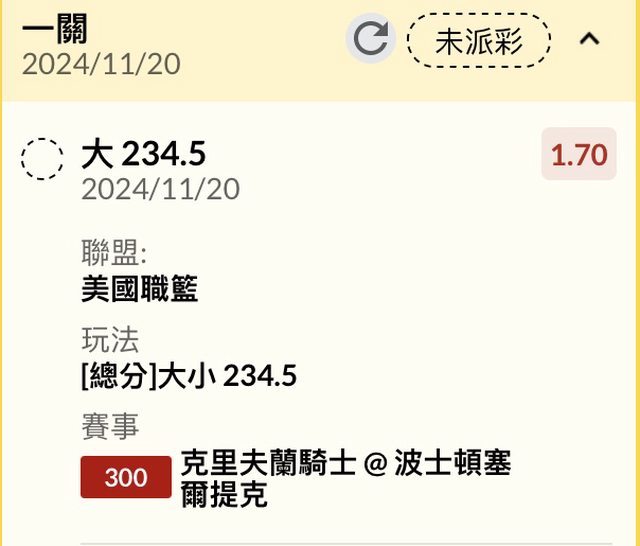 ※ 文章網址: https://www.ptt-site.org.tw/SportLottery/M.1732060567.A.DA7