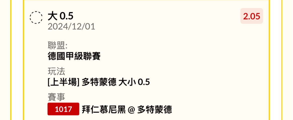 粗暴推薦:多特蒙德 受讓 0:1 1.95
