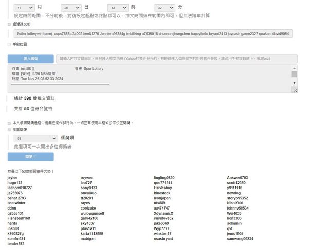 (抽實況比賽結束前有留言者)