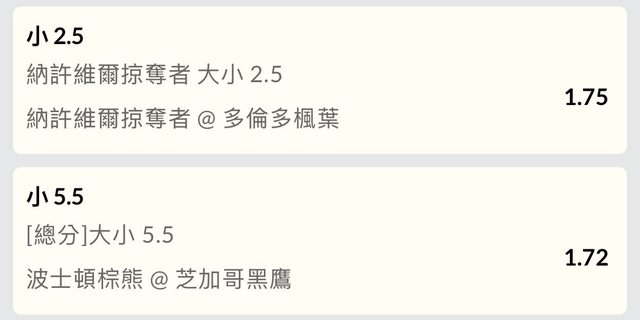 最近nhl勝負很鬼 玩大小就好~