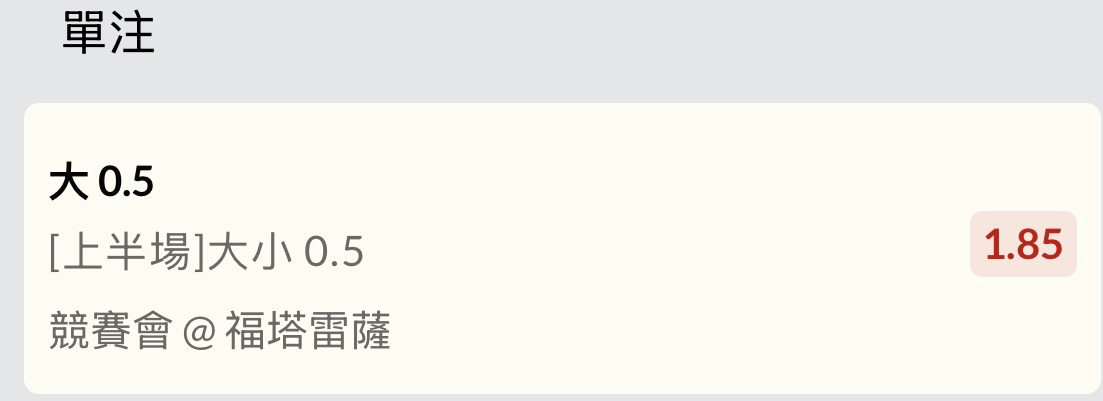 推 ty7788665: 2.5大2.4收 上半還沒進球買的 106.1.217.229 04/02 10:15