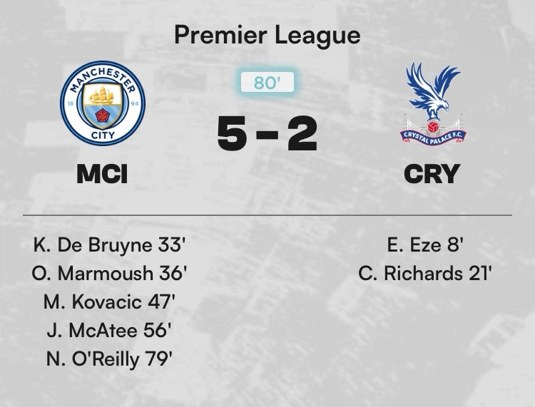 每輪總合場均,曼城10.0、水晶宮10.2