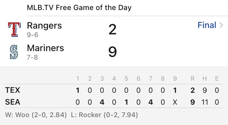 Texas Rangers 9-6