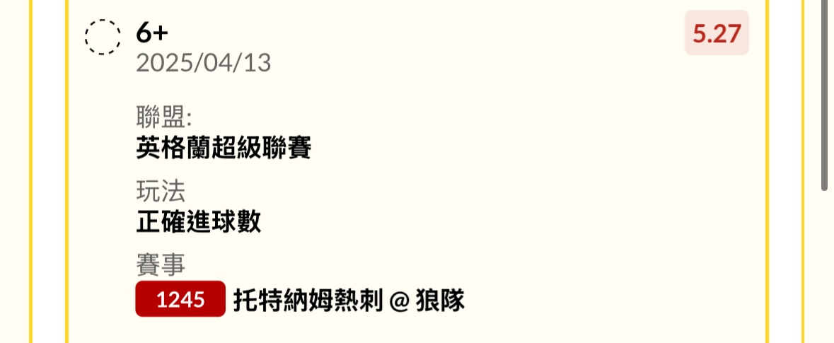 推 Rayswei: 賽前6+ 7.5倍樂透!!! 再來一顆收池!!! 123.193.164.16 04/13 22:44