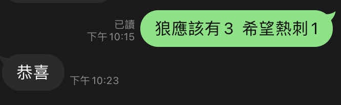 → terrificday: 狼3.5大收 6+收 42.70.89.104 04/13 22:45