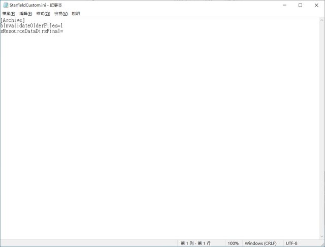 新增一個檔案:StarfieldCustom.ini,並輸入以下內容,如圖所示。