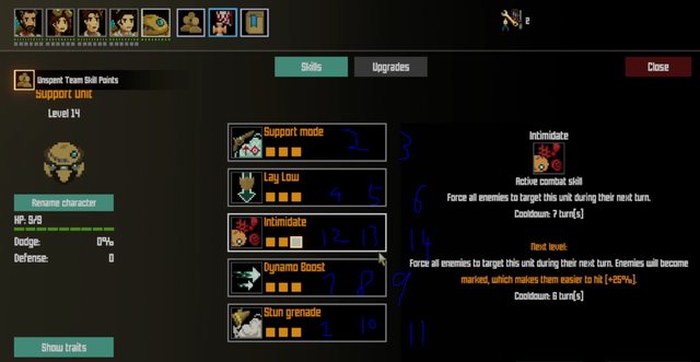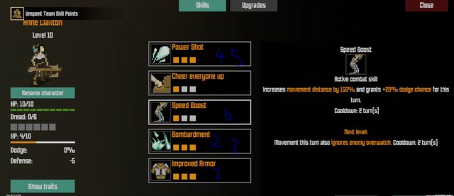 然後休息時的AP量->血量增加容錯率 之後點滿兩招戰術技