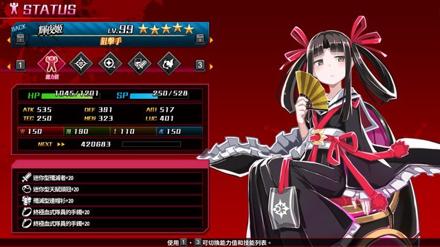為了比較基準一致 以下所有人都80血退5次再截圖 全能力-100就是原始數字