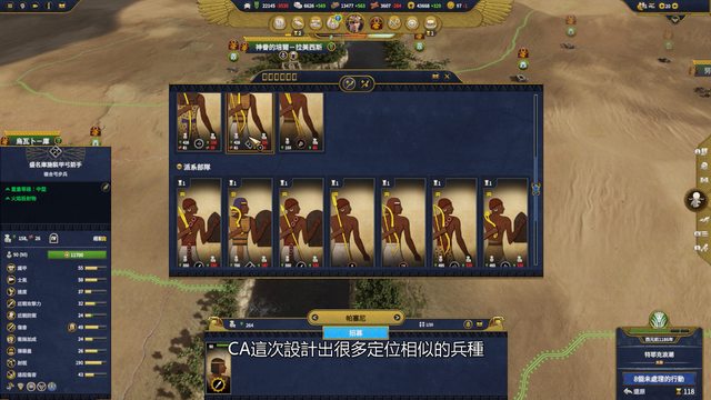 換成鳳衛+阿瓦隆,每一個兵種都有其前後期與戰場角色的定位,但在全戰法老中,同一