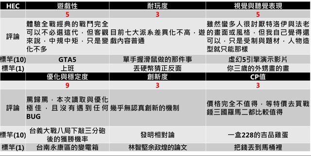 總評戰鬥的部分,單調乏味的戰術選擇與拖沓的戰鬥節奏,加上失衡的兵種平衡,讓我不