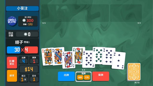 分數計算是由 出牌點數+牌型基礎分數x牌行倍率 只要能達到目標分數就算過關