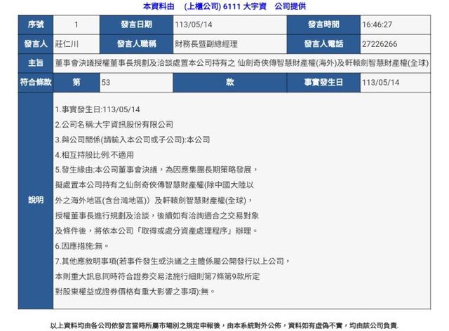 推 devidevi: 軒轅劍有相關未來計畫沒錯啊,不代表大宇有 05/14 17:44