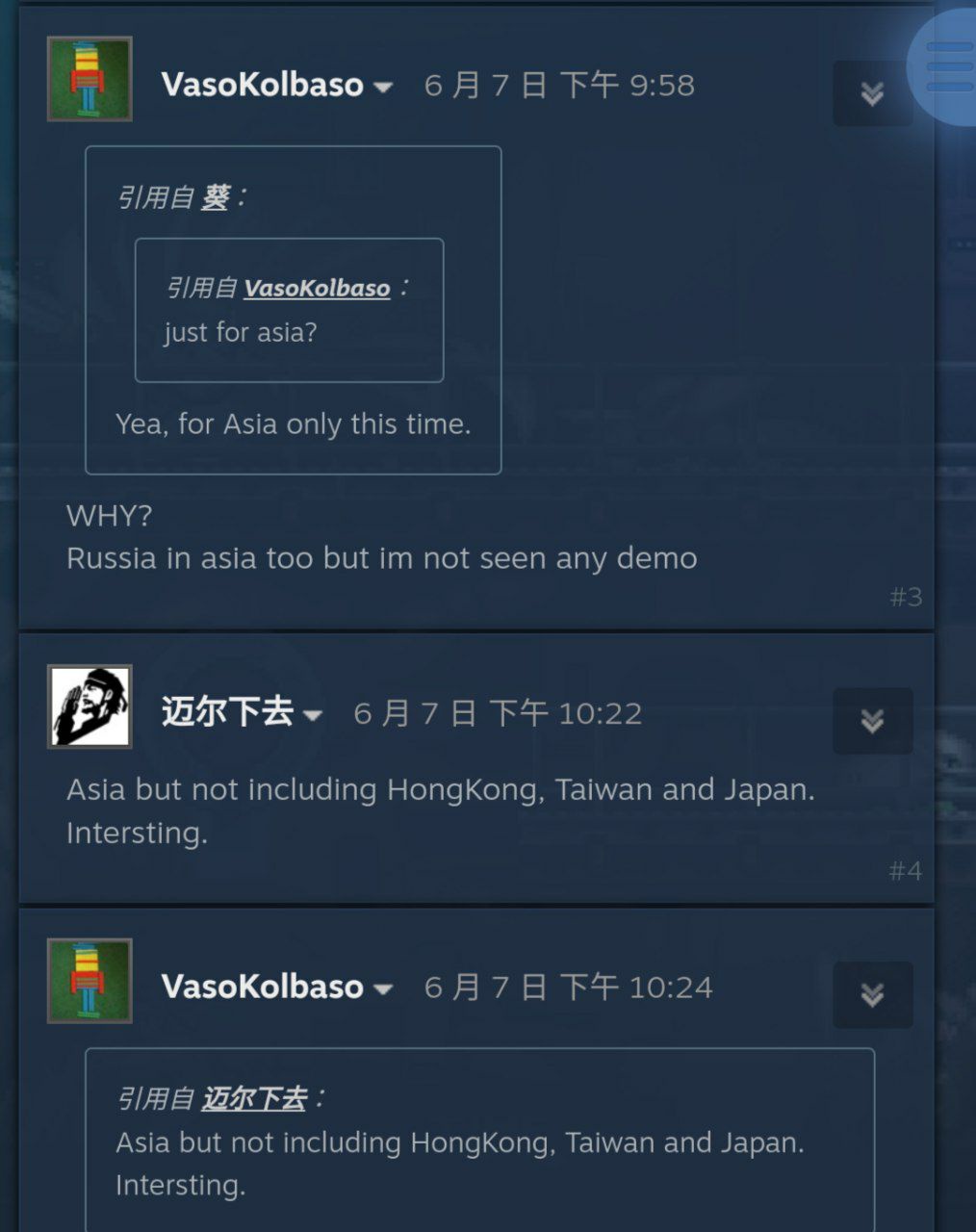 進該遊戲討論區,首先是看到開發者回玩家說這次只開放ASIA